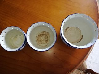 Kit 3 Jarrones Cerámica Azul y Blanco