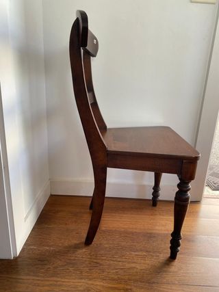Silla de madera maciza con un diseño clásico y elegante. - Patas torneadas. - Respaldo curvo. - Asiento amplio.