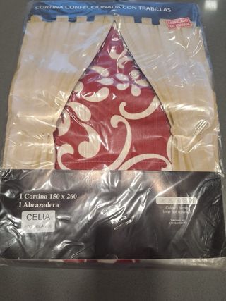 Cortina con un diseño floral en rojo y blanco. Lista para colgar. - Diseño floral. - Confeccionada con trabillas.