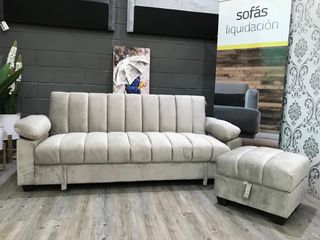 Sofa Cama moderno Con Arcon y Puff - Beige y Gris