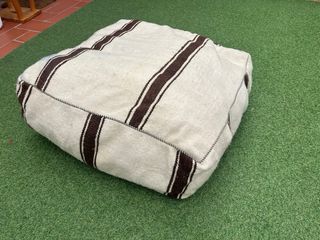 puff asiento cojin rígido y cómodo medidas: 50cmx50cm en perfecto estado, las manchas de abajo se van limpiandolo. lo hemos utilizado 6 meses en el salon como decoracion, no nos hemos sentado mucho en el. Recogida en barrio de Gracia, cerca metro Joanic
