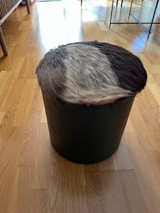 Original taburete o puff con un diseño único. - Revestimiento superior de pelo. - Base cilíndrica.