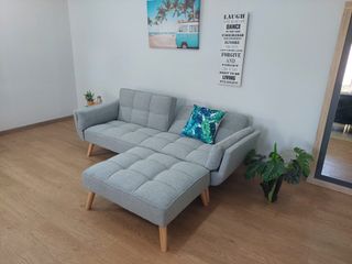 !atendemos por whats 63*22*47*000 !! ✅Totalmente nuevo y con 2 años de garantia ✅Envios a toda Esapaña y Barcelona pago en persona Sofá cama de tela en color gris, con un diseño moderno y funcional. - Estructura de madera. - Cojines cuadrados. - Incluye otomana a juego.