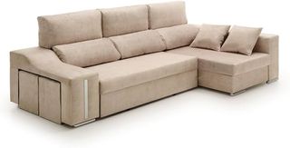 Sofá chaise longue con espacio de almacenamiento y 2 puff. SE VENDE POR MUDANZA, NO NOS CABE EN EL PISO. ESTA DESMONTADO Y EMBALADO PARA RETIRAR. PRECIO NEGOCIABLE BARCELONA - SANT ANTONI. - Diseño moderno y funcional. - Tapizado en tela. - Color beige. • Sofá cheslong Medidas: 2'65x1'45 Tela resistente y fácil de limpiar Asientos amplios y respaldo cómodo