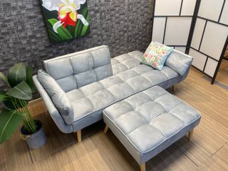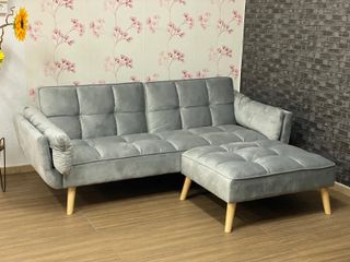 Sofá cama gris + puff terciopelo Nuevo
