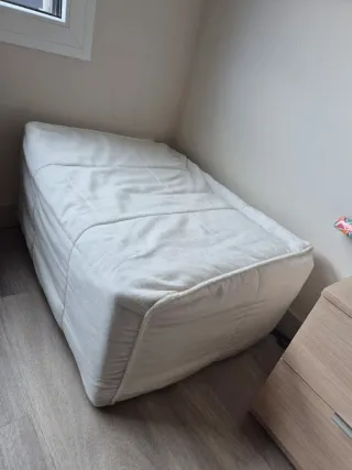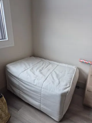 Práctico puff que se transforma en cama plegable. Ideal para espacios reducidos o como asiento adicional. - el colchon esta manchado pero se puede limpiar - Se vende por cambio de mobiliario -se transforma en una cama de 90