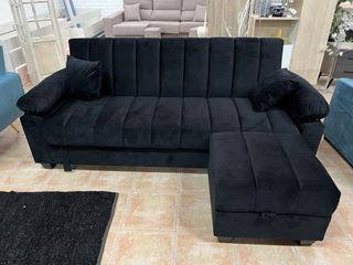 Sofá cama moderno negro + taburete NUEVO