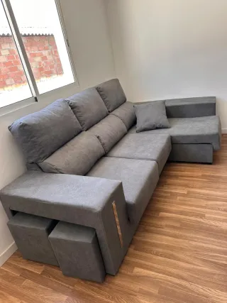 Sofá cama moderno gris con arcón y puff NUEVO