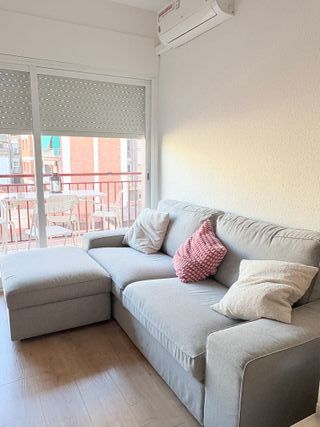Sofá cama de tres plazas de Ikea. Color: gris oscuro. Antigüedad: 6 años, perfecto estado. Siempre se ha usado con funda. Se vende con funda específica color gris o sin funda por el mismo precio. La funda está un poco arañada. Opcional: puff a juego con espacio de almacenaje. La tapicería está algo arañada. 50 € Recogida el lunes 16 de febrero por la tarde. Solo venta en persona. Zona ventas/ El Carmen. El sofá está en un piso 10 y no cabe en el ascensor, por lo que hay que desmontarlo o bajarlo los 10 pisos.