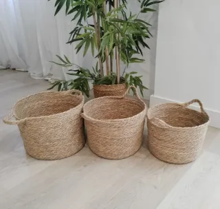 NUEVAS!! Conjunto de 3 cestas de fibras naturales pongotodo de estilo boho-nórdico Medidas: Grande: Diámetro 32 cm, alto 22 cm Mediana: Diámetro 28 cm, alto 20 cm Pequeña: Diámetro 24 cm, alto 18 cm Realizo Envíos 🚚 Más modelos en mi perfil 🌺 Decoración, cestas, cestos, maceteros, leñeros, banco, banquito, taburete, puff, silla, alfombras, felpudos, eventos, bodas, comunión, sala de estar, salón, cocina, dormitorio de Zara Home, Ikea, Leroy Merlín, Maison du Monde, Muy Mucho, Sklum , Loja do Gato, material madera, fibra, yute, mimbre, esparto, bambú, seagrass, algodón, estilo vintage, bohemio, rústico, nórdico, boho, chic.