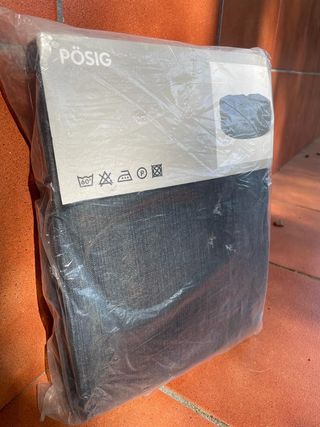 Puff PÖSIG de IKEA ya descatalogado. Sin estrenar NUEVO Compuesto por: - funda vaquera, lavable a 60ºC, 100 % algodón, en su embalaje original sin abrir. - cuatro cojines de plástico duro de SoftAir technology (sin la caja, pero en perfectas condiciones, nunca hinchados). Medidas: 120 cm de diámetro / 40 cm de alto. Las últimas dos imágenes son indicativas de cómo queda montado y cómo son los cojines hinchados, pero no son mías porque el producto es NUEVO.