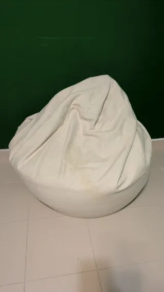 Puff tipo pera de la marca BANANAIR, en color beige. Es lavable a máquina y fácil de transportar. - Funda lavable. - Diseño versátil. - Tacto suave y agradable - Poco uso, tiene un año Hay un pequeño descosido fácil de arreglar. Se puede ver en la última foto. Se vende por espacio y poco uso.