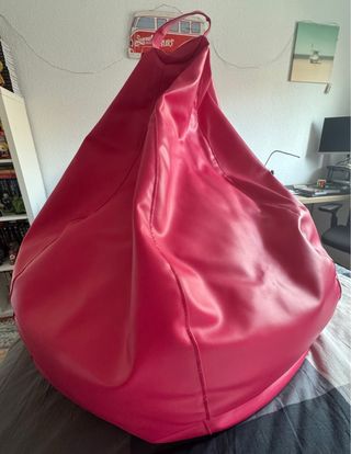 Cómodo puff con forma de pera en un vibrante color fucsia. - Diseño moderno y ergonómico. - Asa superior para facilitar su transporte. - Costuras reforzadas para mayor durabilidad.