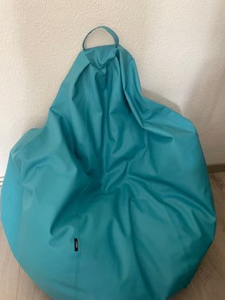 Cómodo puff con forma de pera. - Material: Polipiel. - Color: Turquesa. Tenemos 2, se pueden vender juntos por 50€ o individualmente por 30€.