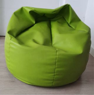 Puff de polipiel en color verde. Diseño en forma de pera. Medida aprox: 60 diámetro. Como Nuevo. Bolas internas de relleno en prefecto estado.