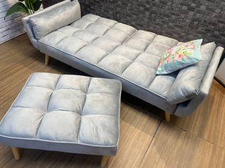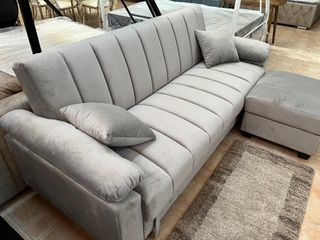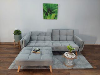 !!Sofá cama gris - terciopelo+ puff nuevo!!