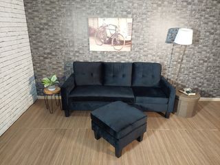 SOFA NUEVO CHAISE LONGUE NEGRO + PUFF MOVIBLE