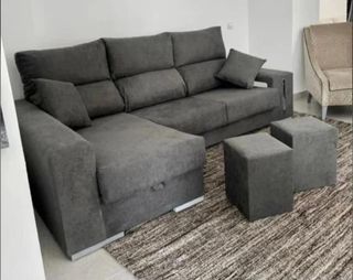 Sofá chaise longue reversible (completamente nuevo) según el espeacio que tenga o según prefiera, además incluye un puff movible. Tejido resistente, estructura de aglomerado de madera, patas pvc. Disponemos de más sofás por si buscas de otro estilo. ¡Escríbeme sin compromiso! 📩 Escríbeme sin compromiso para más detalles o fotos 666*814*566 - Entregas muy rápidas + pagas al recibirlo