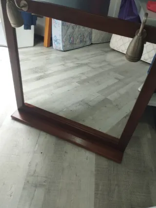Mueble de dormitorio de madera, set completo. - Mueble principal. - Mesitas de noche. - Espejo. Tiene signos del paso del tiempo y uso, pero sigue estando en buen estado.