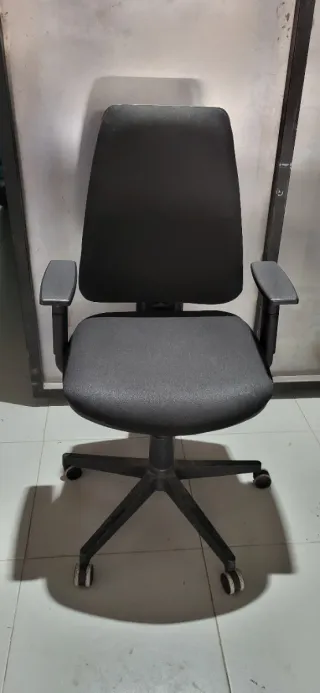 Silla de oficina con un diseño moderno y funcional. Su tapicería de tela ofrece comodidad para largas jornadas. - Base de plástico con ruedas para fácil movilidad. - Reposabrazos ergonómicos.