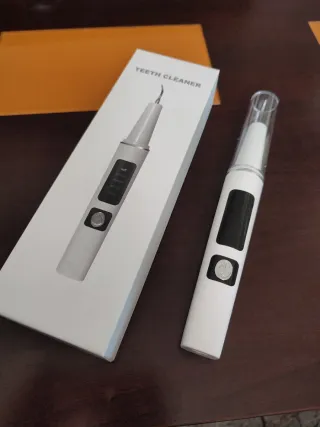 Dispositivo para la limpieza dental de perros y gatos. Su diseño es blanco y cuenta con una pantalla. - Punta metálica para limpieza. - Pantalla de visualización. - Botón de encendido/apagado. Estado: usado, pero sin uso real (la mascota no se dejó utilizar). Funciona perfectamente y no tiene defectos