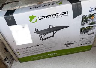Mesa colgante para balcón, modelo Toulouse de greemotion. Perfecta para aprovechar el espacio. - Tablero de malla metálica. - Estructura y tablero con recubrimiento de plástico. - Resistente a la intemperie.