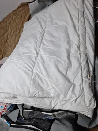 Nórdico para cama de 135cm. Hay que lavarlo pero porque se amarilla de estar guardado. No es sucio. Regalo funda nórdica. - Color blanco. - Material de poliéster y tela.