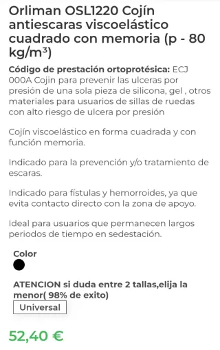 Cojin antiescaras ,para asiento o silla de ruedas. Sin estrenar.