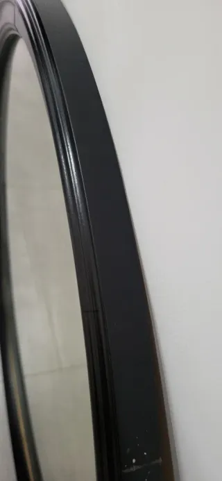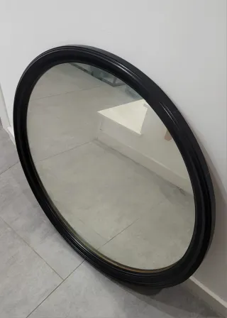 Elegante espejo redondo con un marco de madera y cristal. - Marco de madera. - Cristal transparente. - Diámetro de 85 cm