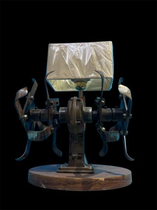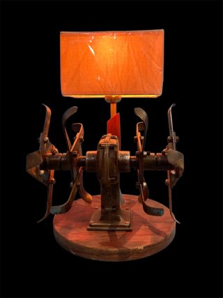 Lámpara hecha a base de pieza de rastrillo, peana de madera y pantalla rectangular. Casquillo e27. Nuestra opción es hacer artículos con materiales reciclados, dar una nueva vida a cualquier pieza y proteger nuestro planeta y el de nuestros hijos. Nuestros artículos son únicos, exclusivos y limitados. Es probable que hagamos uno parecido, pero NUNCA igual. Si no lo compra hoy, mañana otra persona lo tendrá en su casa. Hacemos envíos a toda España, Italia y Portugal. - Materiales de calidad.