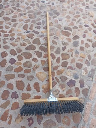 Se vende rastrillo en buen estado, ideal para la limpieza de jardines o patios. - Cerdas resistentes. - Mango de madera. - Cabezal metálico.