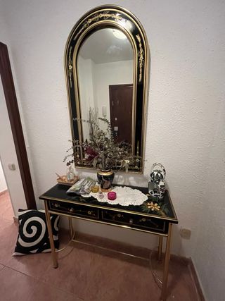 Elegante recibidor de estilo antiguo con detalles ornamentales. Lleva en esa esquina más años que yo tengo, quiero renovar la entrada pero me da pena tirarlo. Me gustaría que pudiera tener más vida útil en otro sitio Escucho ofertas