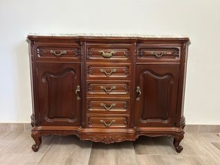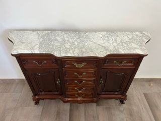 Mueble recibidor antiguo madera mármol
