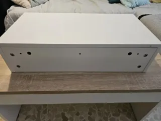 Cajón recibidor suspendido de diseño moderno y elegante, perfecto para organizar tu entrada. A estrenar, sólo está montado - Acabado en blanco. - Estructura de madera y plástico. -Tiene una pequeña rotura en la parte de abajo (ver foto) que no se ve ni perjudica la estructura ni el uso y una tara que es casi imperceptible en la parte superior pegada a la apertura del cajón ( en la foto parece más de lo que es).