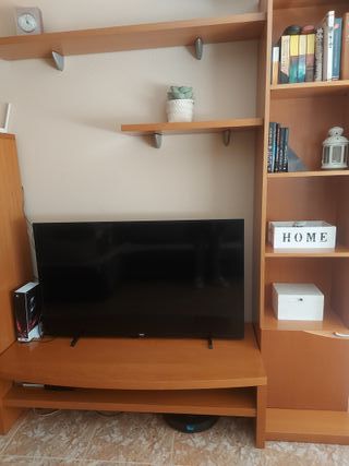 Conjunto de mueble de TV con módulos y estanterías a juego. Ideal para organizar tu salón. - Mueble principal con espacio para TV. - Módulos de almacenamiento adicionales. - Estanterías para exposición o libros.