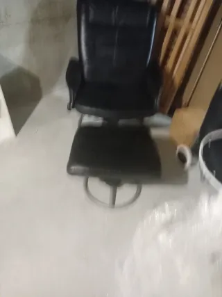 Cómodo sillón reclinable de Ikea, perfecto para relajarse. Incluye un reposapiés a juego. - Tapicería de piel. - Color negro.
