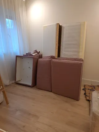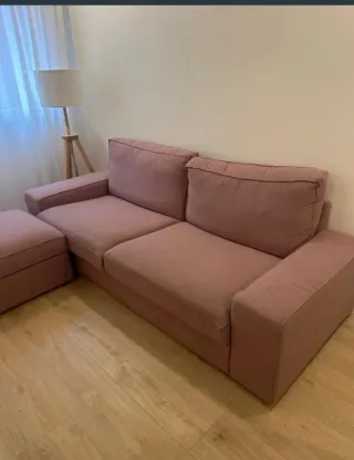 Sofá de 3 plazas KIVIK de IKEA con reposapiés a juego. - Reposapiés con espacio de almacenamiento. - Tapicería de tela. - Color rosa suave. Esta desmontado, para facilitar el transporte