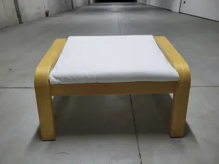 Reposapiés POÄNG de Ikea. Su diseño curvo y el cojín acolchado ofrecen un extra de confort. - Estructura de madera curvada. - Cojín acolchado con tapicería beige + funda extra en color azul marino. Ideal para descansar las piernas desde el sillón o sofá, o como asiento extra para las visitas. Esta en buen estado. La esponja y cubre cojin, se pueden lavar. Me costo mas del doble. No es negociable. No envio, solo recogida en mano