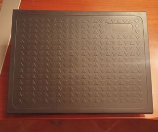 Reposapiés de oficina en color negro. Su diseño texturizado con pequeños triángulos proporciona una base antideslizante. - Color: Negro - Diseño texturizado