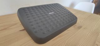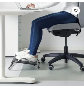 Reposapiés Ikea DAGOTTO de color negro. Está en buen estado, aunque presenta algunas señales de uso. En la última foto se puede apreciar un pequeño desperfecto que no afecta al uso. - Diseño práctico y cómodo. - Estructura metálica y superficie de plástico resistente. - Ideal para mejorar la postura al trabajar sentado.