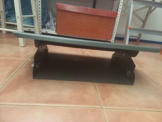 Reposapiés para escritorio con un diseño moderno y funcional. - Superficie texturizada para mayor agarre. - Patas de metal cromado. - Diseño ergonómico. Sin usar