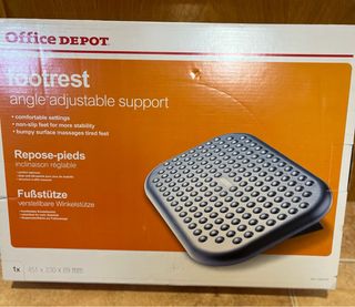 Reposapiés de Office Depot con soporte ajustable en ángulo. Ideal para mejorar la comodidad en tu espacio de trabajo. - Este reposapiés es regulable mediante un simple sistema pivotante. - Ajustes de altura cómodos. - Pies antideslizantes para mayor estabilidad. - Superficie con relieve para masajear los pies cansados. Medidas 451/330/89