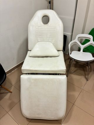 🙌🏻Camilla Fija 3 Cuerpos Camilla fija de 3 cuerpos. Regula de forma independiente la inclinación del respaldo 45º y del reposapiés. Cojín reposacabezas extraíbles. Agujero facial. Estructura en acero y tapizado blanco en PVC de gran calidad y fácil limpieza.