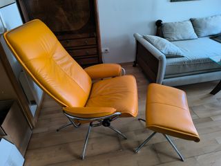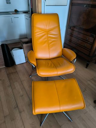 Sillón y reposapiés de piel naranja