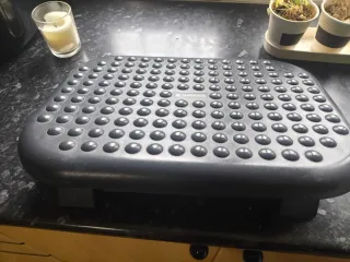 Este reposapiés cuenta con una superficie texturizada para mayor comodidad. Casi nunca usado. Alicia tensión y mejor circulación , certificado FIRA - Diseño ergonómico para mejorar la postura. - Superficie con protuberancias para estimular la circulación.