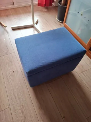 Este reposapiés ofrece un espacio extra para guardar objetos y mantener tu salón ordenado. Su diseño se adapta a cualquier estilo de decoración. - Tapizado en tela. - Color neutro. - Diseño con falda. Lo compré hace 6 años. Lo vendo barato porque me mudo