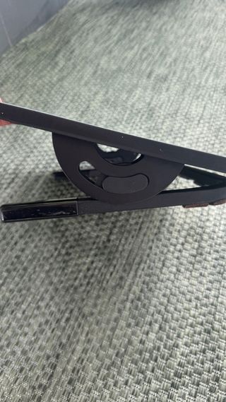 - Estructura metálica, regulable en inclinación. - Diseño con superficie texturizada para mayor agarre. - Base estable para usar en cualquier superficie.