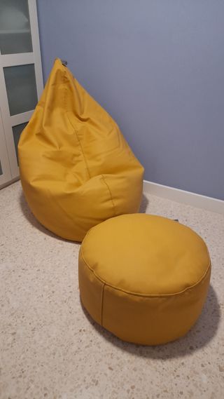 Conjunto de puff pera Relax tamaño XL y reposapiés a juego. - Puff con forma de pera. - Incluye reposapiés. - Color mostaza - material: Polipiel