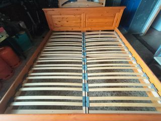 Se venden dos camas individuales. Una de 90x180cm y otra de 90x200cm. - Estructura de madera en las cabeceras. - Base de somier metálica con láminas de madera.
