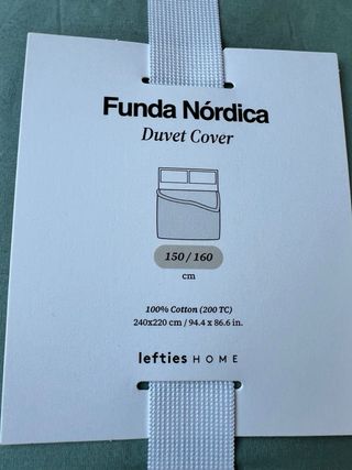 Funda nórdica de algodón en color verde, tamaño 150/160 cm. No vienen incluidas mas fundas de almohada. - Composición: 100% Algodón (200TC). - Medidas: 240x220 cm. - Marca: Lefties Home.